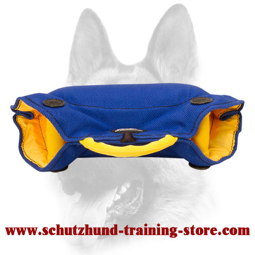 The gear is very lightweight you'll not be soon tired when training. It has 2 inside hard padded handles and 1 outside nylon handle which allow hold this gear firmly and choose the right bite angle for the pet. They are situated so that you will not be wounded by your canine during educating process. The superior design of the outfit will suit for Police, Schutzhund and Military Training. Many professionals have already trained their young dogs with our product and were surprised with the result they've got! Try this bite builder with your four-legged friend!