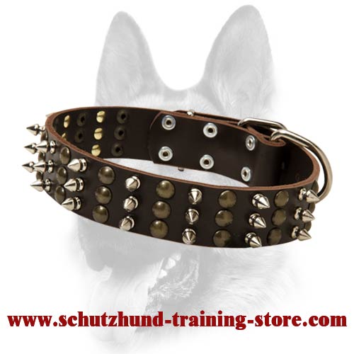Strongest leather dog collar for all dog breeds-spiked and studded Schutzhund collar