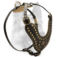 Royal Leather Padded Dog Harness -Design Studded Comfy Harness